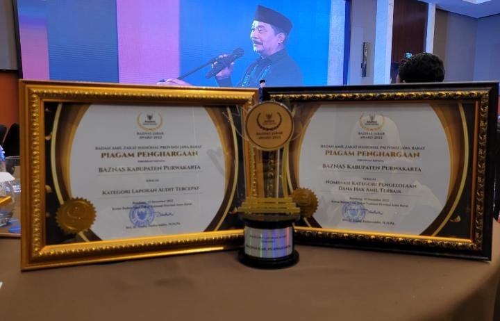 IDEANEWSID. Badan Amil Zakat Nasional (Baznas) Kabupaten Purwakarta sukses meraih dua penghargaan paling bergengsi pada Baznas Award 2022 yang diselenggarakan oleh Baznas Provinsi Jawa Barat di Pullman Bandung Grand Central, Kota Bandung, Kamis (15/12).