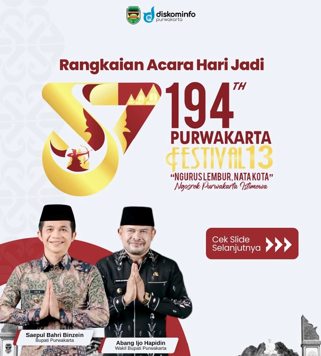 IDEANEWSID. Pemerintah Daerah Kabupaten (Pemkab) Purwakarta menyambut Hari Jadi ke-194 Kota Purwakarta dan ke-57 Kabupaten Purwakarta dengan rangkaian kegiatan yang dimulai sejak Juni hingga Agustus 2025.
