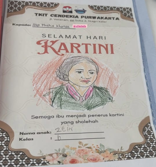 “Seperti biasa, cukup banyak surat yang masuk ke kami, baik berupa surat undangan maupun yang bersifat kedinasan. Akan tetapi ada satu surat yang sangat menarik perhatian, yakni surat ucapan Hari Kartini dari Zein, seorang anak TKIT Cendekia,” kata Muthia.