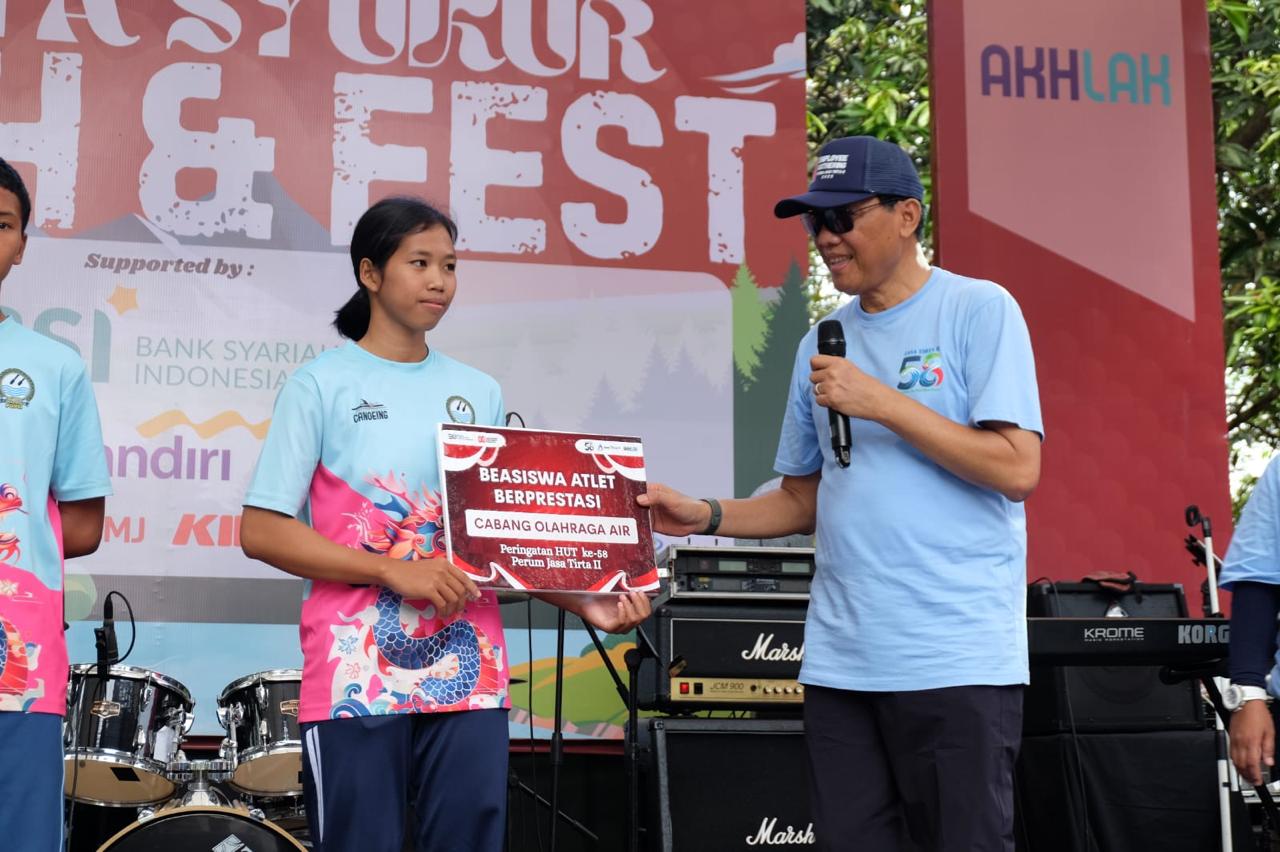 IDEANEWSID. Perum Jasa Tirta II menyerahkan beasiswa kepada tiga atlet berprestasi di bidang olahraga air melalui acara bertajuk Tirta Syukur Gath & Fest, Selasa (26/8/2025).