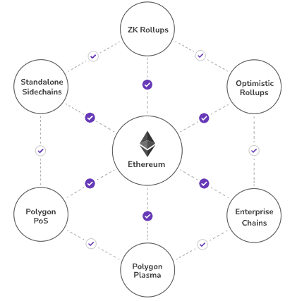 Polygon sering disebut sebagai “Ethereum’s Internet of blockchain” karena ia menciptakan ekosistem multi-chain yang bisa digunakan bersama dan melekat kepada Ethereum.