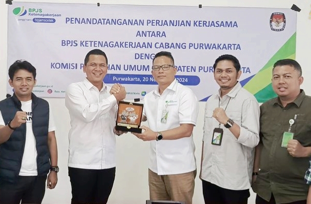 IDEANEWSID. BPJS Ketenagakerjaan atau BPJamsostek Cabang Purwakarta menandatangani perjanjian kerja sama (PKS) dengan Komisi Pemilihan Umum (KPU) Kabupaten Purwakarta di Kantor KPU Purwakarta, Rabu (20/11/2024).